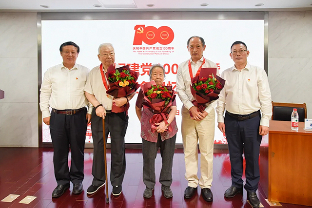 建黨100年,黨齡50年。恒天集團黨委書記、董事長劉海濤,黨委副書記、總經(jīng)理顏甫全向離退休老黨員代表曹東升(黨齡68年)、郭春梅(黨齡68年)、李懷嶺(黨齡51年)頒發(fā)了“光榮在黨50年”紀念章,新黨員代表為老黨員獻上鮮花。這幾位離退休老黨員深情表示,中國共產(chǎn)黨的一百年既是艱苦奮斗的一百年,也是取得輝煌成就的一百年,我們雖然離開了工作崗位,但心與公司是始終相連的,會繼續(xù)大力傳承紅色基因,余生用忠誠繼續(xù)譜寫生命樂章。